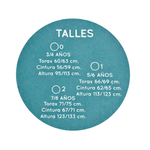 - Talle 1 (5/6 años): Torax 66/69 cm, Cintura 62/65 cm, altura 95/104 cm