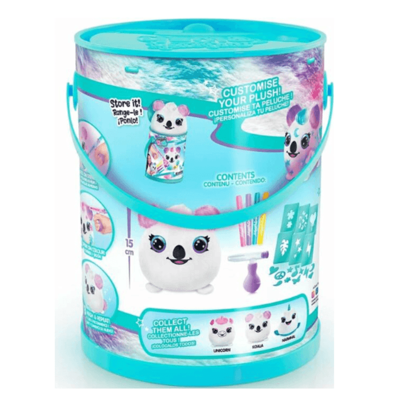 ¡Llena de color y detalles únicos tu amigo de peluche! Con este nuevo cubo descubre lo que guarda en su interior, un peluche muy especial y accesorios con los que diseñar a todo color a tu nuevo amigo. Un peluche de lo más suave y listo para ser pintado gracias al aplicador spray y las plantillas incluidas en el pack.