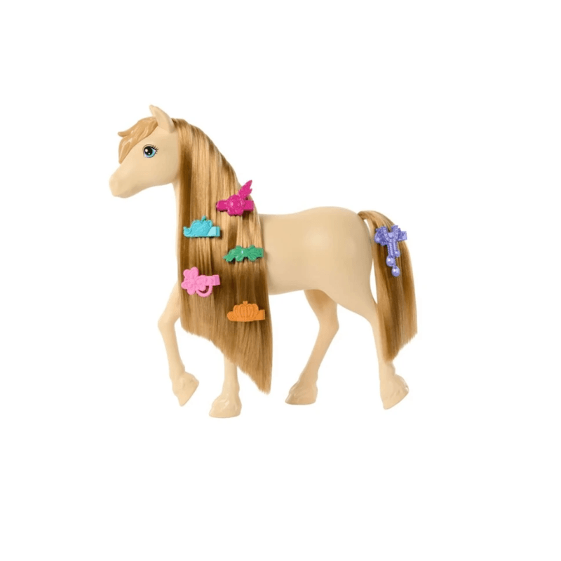 Cada caballo de juguete tiene una melena y una cola extra largas y viene con un peine, una extensión de cabello y 6 pinzas para el cabello para divertirse peinándolo