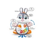Este adorable conejito tiene orejas que se mueven, ojos que parpadean, brazos que se mueven y efectos de sonido que atraen a los niños y los mantienen entretenidos.