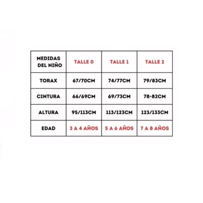 !El disfraz viene en 3 talles (ver tabla con medidas)