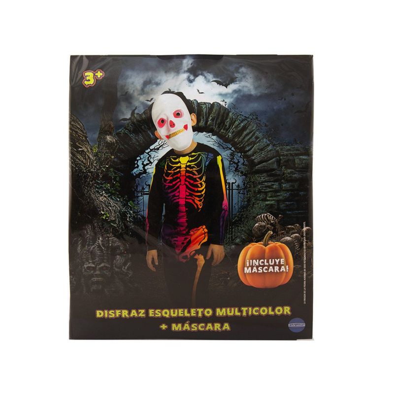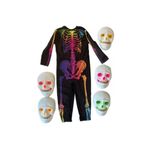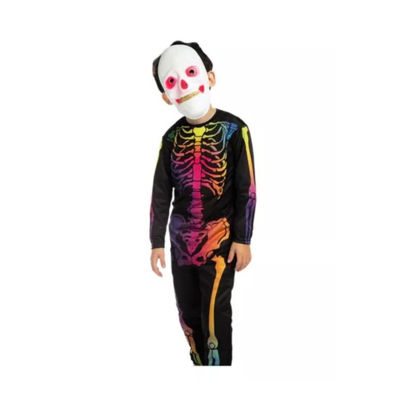 Disfraz Esqueleto Multicolor + Mascara Infantil Halloween TALLE S