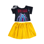 Las Guerreras K-Pop Mira es ideal para que las niñas se luzcan en juegos, cumpleaños, shows y fiestas temáticas. Su diseño moderno combina una remera estampada con una pollera amplia y cómoda, sumando accesorios que completan el outfit guerrero.