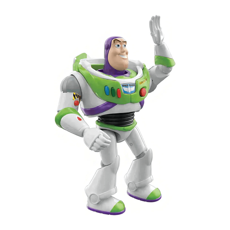 Cuenta con más de 20 frases de la película y sonidos de cohete, ¡listo para despegar y recrear las grandes aventuras de Toy Story! Buzz Lightyear cuenta con su característico traje de guardián espacial con visera extraíble.