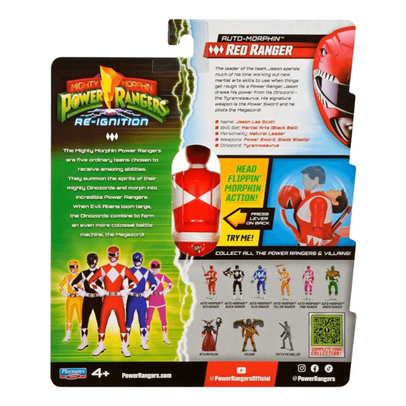 Figura Power Rangers Re-Ignition - Auto-Morphin ¡La nostalgia está de regreso con las figuras Power Rangers Re-Ignition Auto-Morphin! Inspiradas en la clásica serie Mighty Morphin Power Rangers, estas figuras articuladas traen de vuelta la icónica acción "Head-Flippin'", donde el personaje cambia instantáneamente de civil a Ranger con solo presionar una palanca en la espalda.