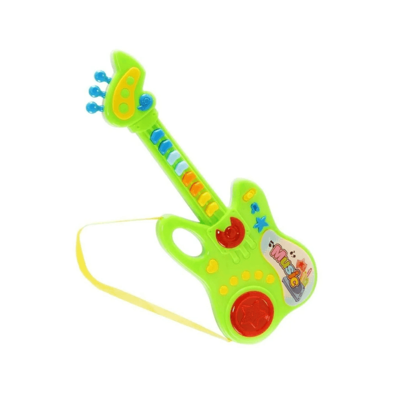 El material de plástico resistente asegura durabilidad y seguridad, permitiendo que la guitarra soporte el entusiasmo y energía de los pequeños rockeros. Además, al ser un juguete que produce sonido, ayuda en el desarrollo auditivo y en la identificación de diferentes notas y melodías.