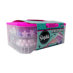 Sophie – Jewelry Box PlaySet para diseñar tus propias pulseras y collares. Dos niveles de creación con más de 400 piezas. Caja plástica contenedora magenta con manija para que la puedas llevar a donde quieras y seguir jugando.