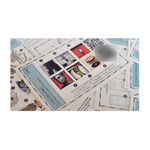 Componentes del juego: 1 tablero, 320 tarjetas, 4 peones, 3 blocs, 3 lápices, 6 sobres, 1 reglamento, 3 tapa tarjetas