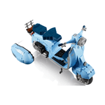 Inspirada en la original: Esta Vespa en versión de ladrillos está equipada con motor para construir debajo de una cubierta desmontable, sistema de dirección y 2 asientos, y lleva una rueda delantera montada en un lateral