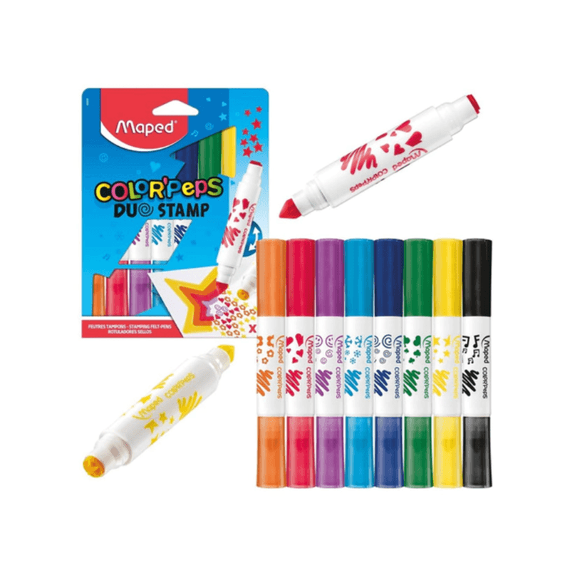 Marcadores con Sellos Duo Stamp son una gama de marcadores de tinta lavable, ideal para colorear y jugar.