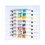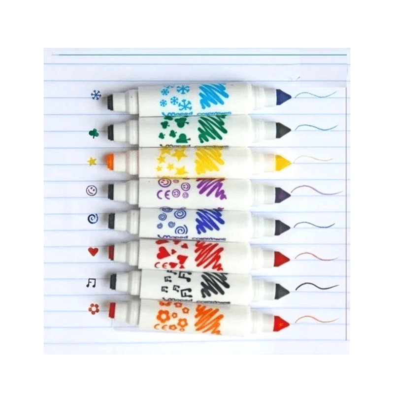Punta cónica que permite trazos finos y gruesos, además divertidos sellos de diferentes formas.