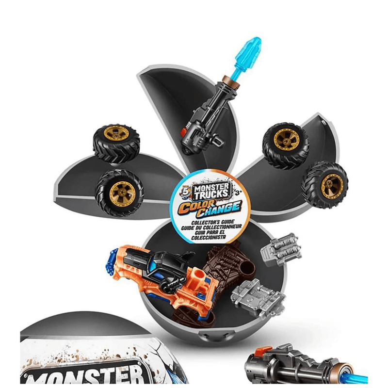Intercambiar y construir: Los camiones Monster de cambio de color vienen con armas y piezas intercambiables para personalizar y construir tu camión monstruo definitivo.
