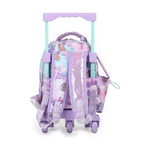 Su interior amplio y cómodo la hace ideal para quienes ya están en primaria, y quieren llevar todo con estilo. Incluye dos compartimentos, bolsillo lateral ajustable para botella, pullers con el personaje y tag personalizado para tus datos. Su carro reforzado con ruedas de silicona asegura un andar cómodo, y las correas acolchadas permiten llevarla también de esta forma.
