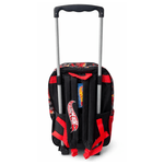 Cuenta con un compartimento principal amplio y un bolsillo frontal con estampa. En su lateral posee un bolsillo de red para botellas u objetos de fácil acceso. Incorpora carro con dos ruedas resistentes de plástico y manija extensible, facilitando el traslado y cuidando la espalda.