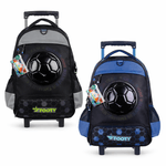 Mochila infantil con carro, ideal para el uso escolar, con diseño deportivo “Next Champ” inspirado en el mundo del fútbol.