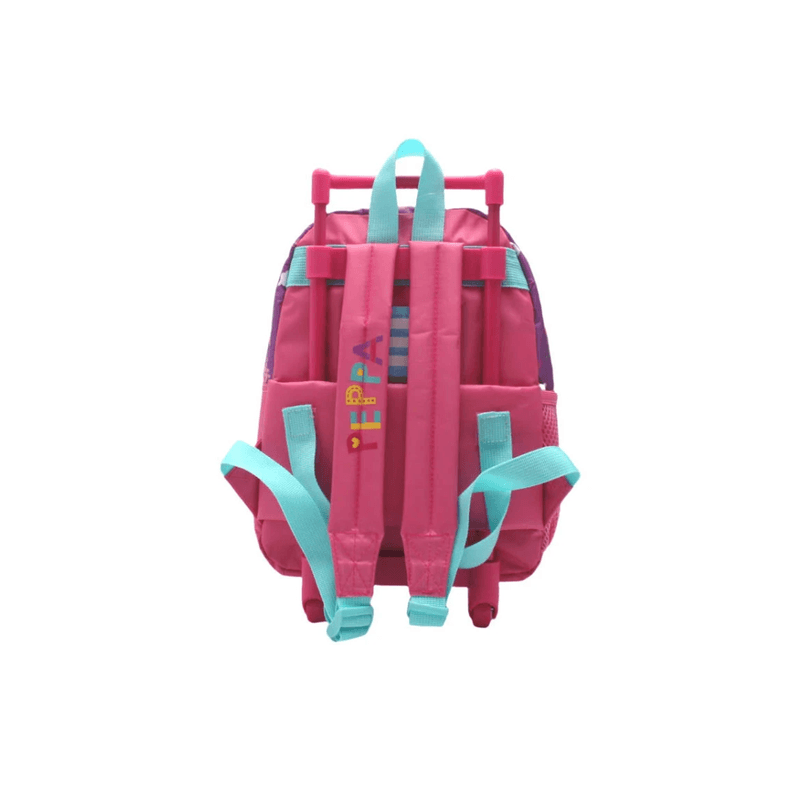 Su diseño colorido con Peppa Pig y arcoíris combina diversión y funcionalidad, permitiendo llevar todo cómodamente sin cargar peso en la espalda.