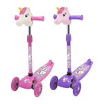 Monopatín plegable con 3 ruedas y cabeza de unicornio.