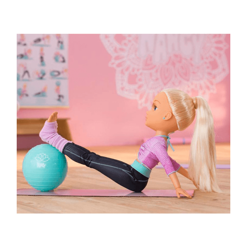 ¡Embárcate en viaje emocionante hacia la flexibilidad, la serenidad y la fuerza con Nancy Yoga Class! Sus 16 puntos de articulación distribuidos por todo su cuerpo le permiten practicar infinidad de posturas de Yoga, y la convierten en la Nancy más articulada que hemos tenido hasta la fecha. Además, incluye una pelota de fitness como accesorio para que parezca que Nancy está en una clase de Yoga de verdad