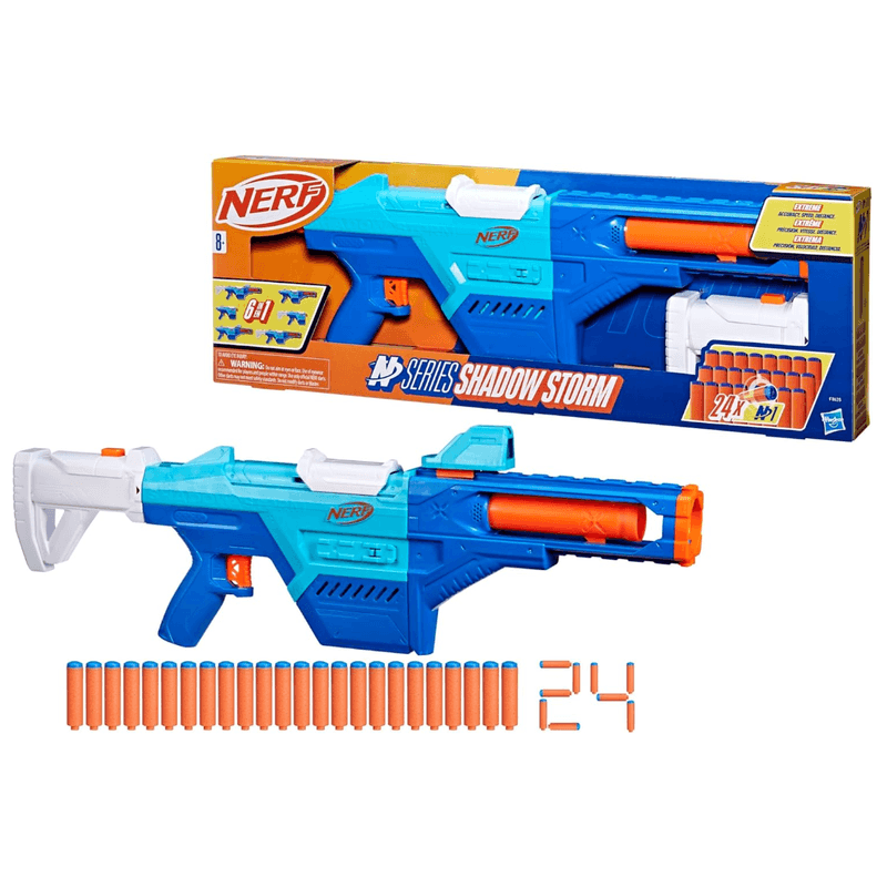 6 EN 1: Crea 6 estilos distintos de lanzador con el lanzador Nerf N Series Shadow Storm que incluye 3 accesorios Nerf para conectar. Solo compatible con los dardos N1 de Nerf N Series