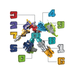 Cada número se convierte en un vehículo diferente y es parte de un set coleccionable. Combiná los 10 números del 0 al 9 y construí un mega robot articulado. Ideal para estimular la imaginación y el juego creativo.