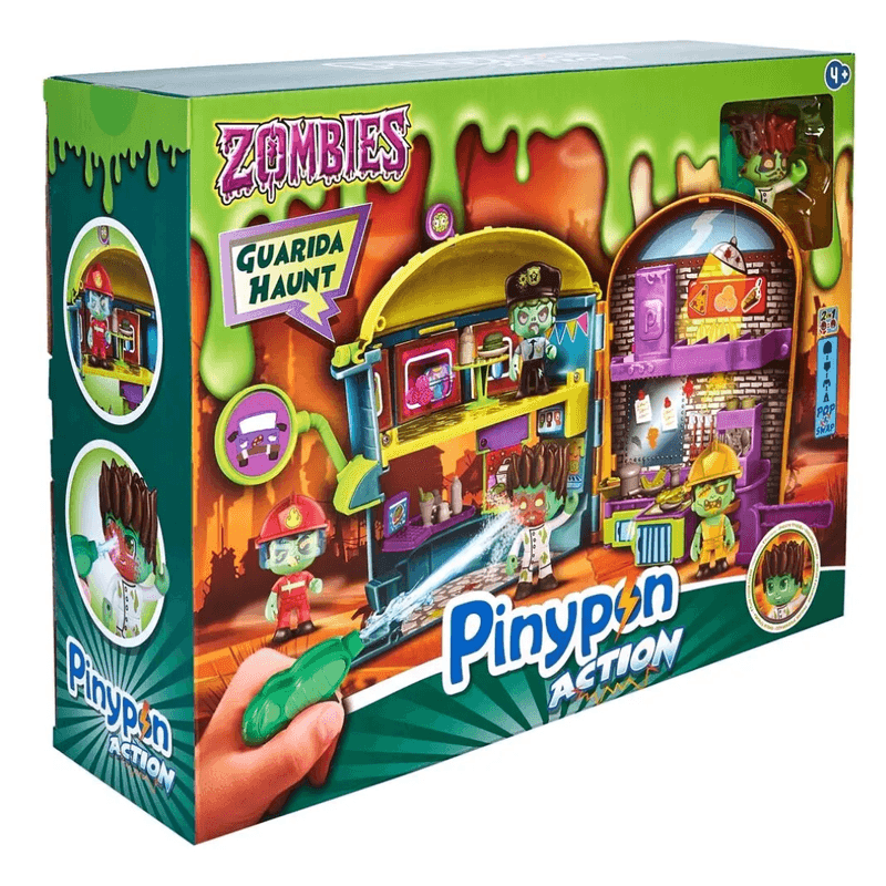 Ideal para estimular la imaginación y el juego de rol en los niños. ¡Descubre todas las sorpresas ocultas en la guarida más divertida de los zombies Pinypon!