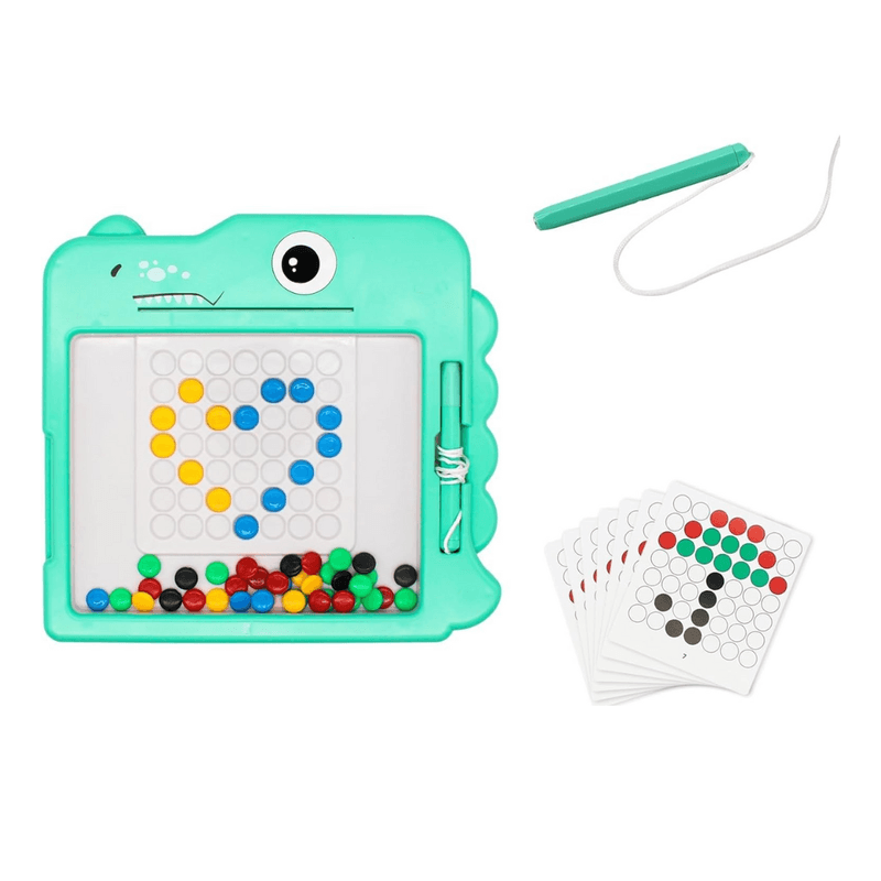 Pizarra Magnética Didáctica Modelo DinosaurioEste entretenido tablero magnético con diseño de dinosaurio es perfecto para estimular la creatividad, la coordinación y el aprendizaje a través del juego. Incluye un lápiz magnético, fichas de colores y tarjetas con patrones para que los niños reproduzcan figuras y desarrollen habilidades visuales y cognitivas.