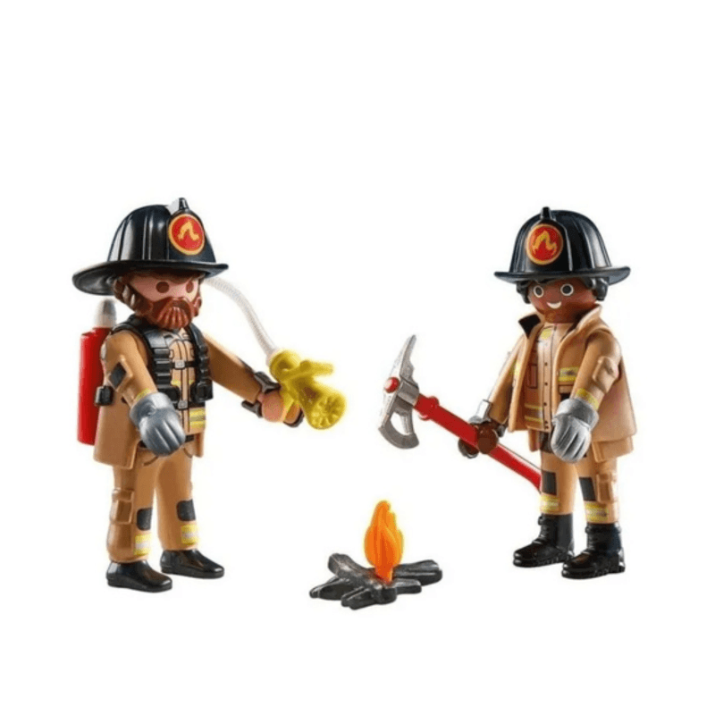 Incluye dos figuras PLAYMOBIL, extintor, hacha y extintor.