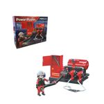 Incluye una figura de bombero articulada, vestida con el equipo completo de protección. Viene acompañado de un set para apagar incendios, que incluye una manguera flexible y accesorios para conectar al "hidrante de fuego", perfecto para simular operaciones de rescate.
