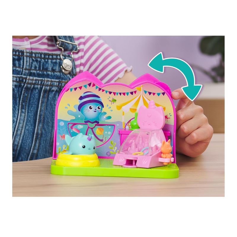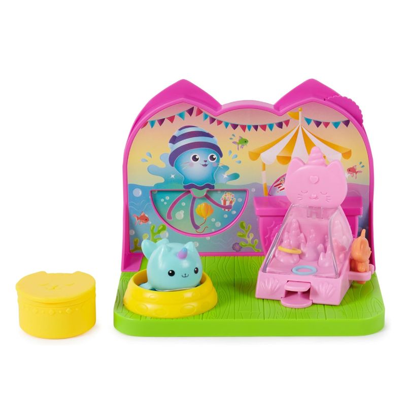 !SALA DE MUÑECAS TEMÁTICA DE CARNAVAL: Coloca a Kitty Narwhal en la piscina de pelotas o prueba tu suerte en el juego de lanzamiento de anillos súper lindo, para tratar de ganar un premio, luego gira la rueda para disfrutar de un cambio de escenario.