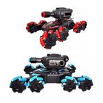 -Multidireccion gira 360 grados. Rota 360 grados sube y baja, elevacion de ruedas, derrapa, tiene funcion spray, lanza dardos, tiene luces.