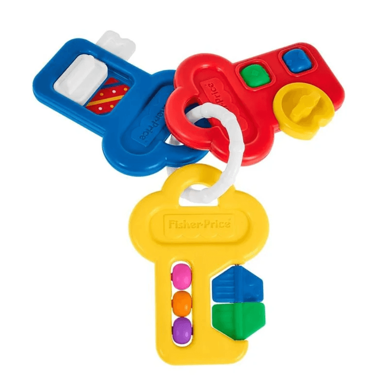 ¡No salgas de tu hogar sin las llaves del bebé, tienen muchas actividades para que se entretengan en casa o en cualquier lugar, Tres llaves de colores brillantes en un anillo para morder abren todo un mundo de diversión práctica, con tambores giratorios, una puerta corrediza, bolitas sonoras giratorias, paletas giratorias y una perilla tronadora,