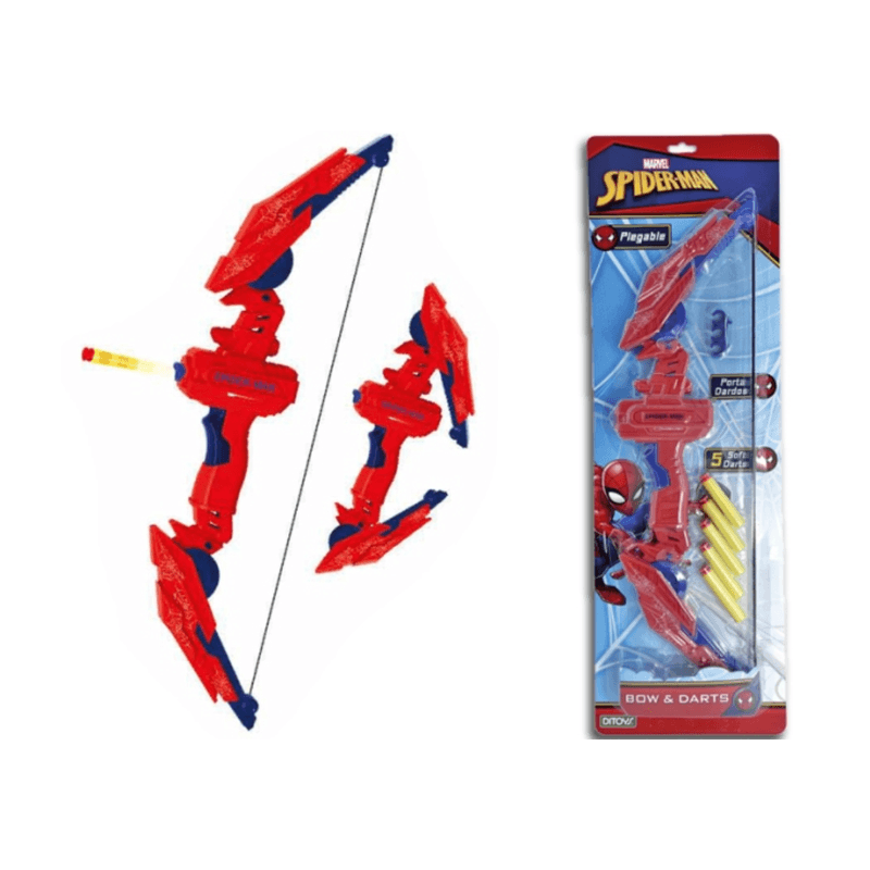 Con un diseño vibrante en azul y rojo, este arco y dardos inspirado en el famoso superhéroe Spiderman promete horas de diversión y entretenimiento