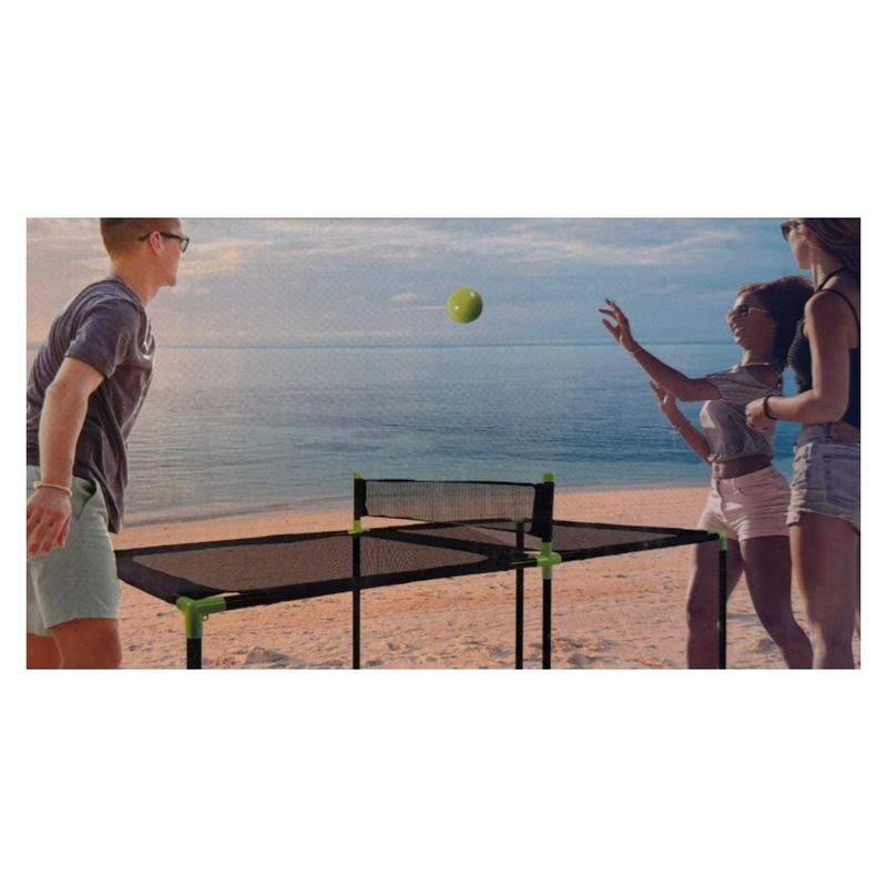 Uno de los jugadores golpea la pelota con la palma de una mano sobre la red hacia el lado del oponente.