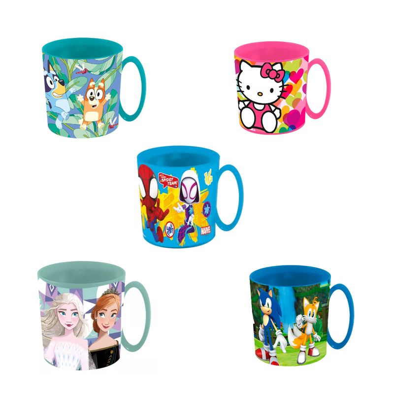 !Práctica taza que hará las delicias de los más pequeños de la casa, al estar decorada con algunos de sus personajes favoritos del mundo del cine y la televisión.
